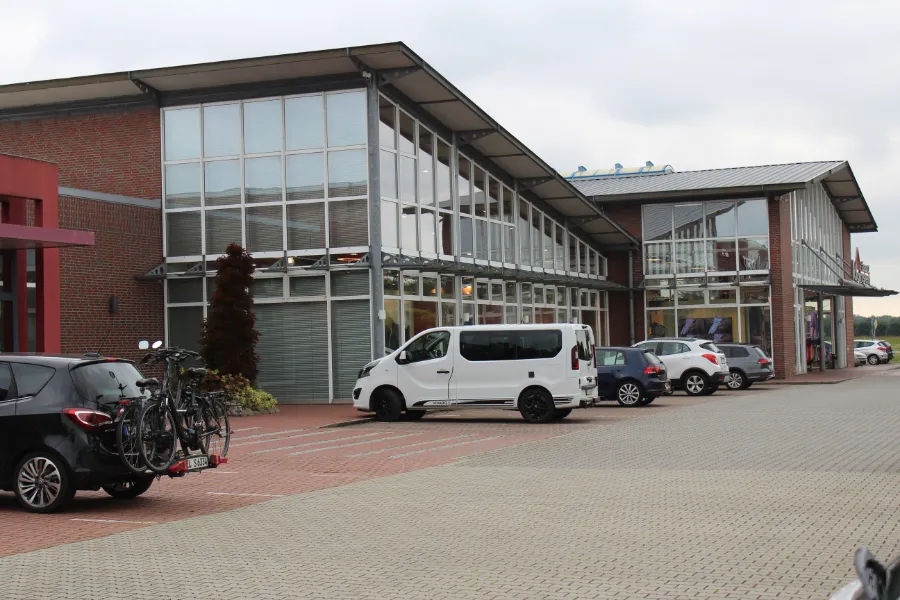 Bauliche Herausforderung: Den vorhandenen Schuhmarkt verbinden mit der „Hithalle“ und einen Verkaufsbereich auf 2. Ebene schaffen mit einem Panorama Café. Beim Sport 2000 ging es um die Schaffung einer Ausstellungs- und Verkaufshalle mit Erlebnis „Kletterwand“. Ausserdem auf dem Verwaltungsbereich eine zweite Ebene die dem Geschäftsführer Jens Klahsen als Wohnung mit großzügiger Dachterrasse diente.