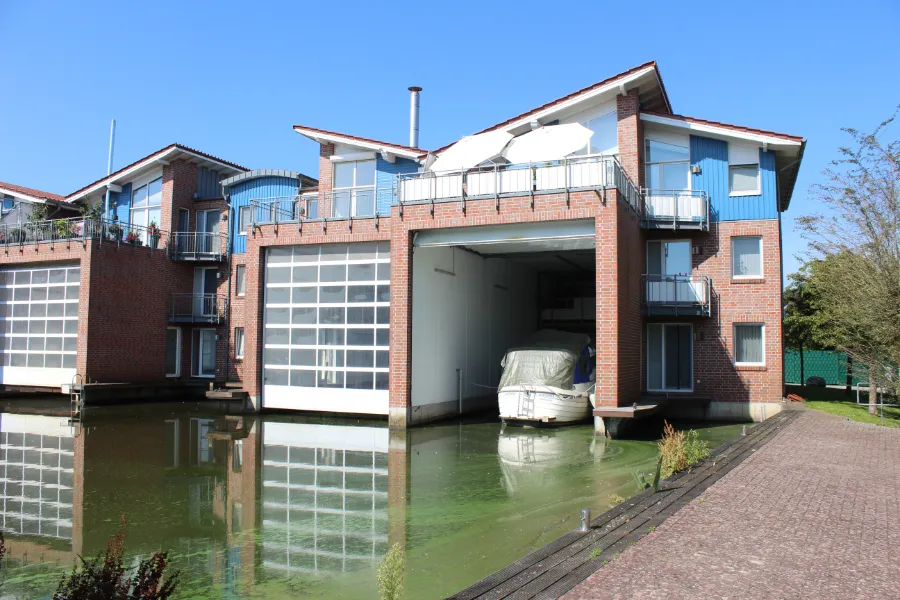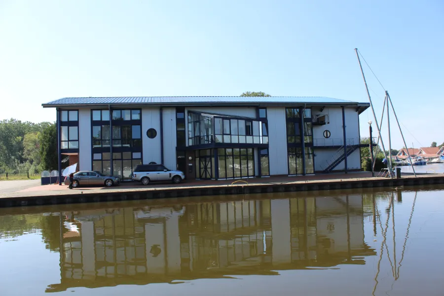 "Bei der Realisierung dieses Projektes lag das Hauptaugenmerk auf das wörtliche „Wohnen am Wasser“. Bootsbesitzer sollten hier die Möglichkeit haben, direkt in die Garage zu fahren und von dort in den Wohnbereich zu gehen. Die Gebäude wurden aufwendig auf Rammpfähle gegründet, die Liegeplätze und Bootsgaragen durch Spundwände vom Wasser abgeschottet. Das Servicegebäude sollte der Durchführung von Reparaturen und Wartungsarbeiten der umliegenden Yachten dienen, mit Möglichkeit eines Bistros und Cafés zum Verweilen."
