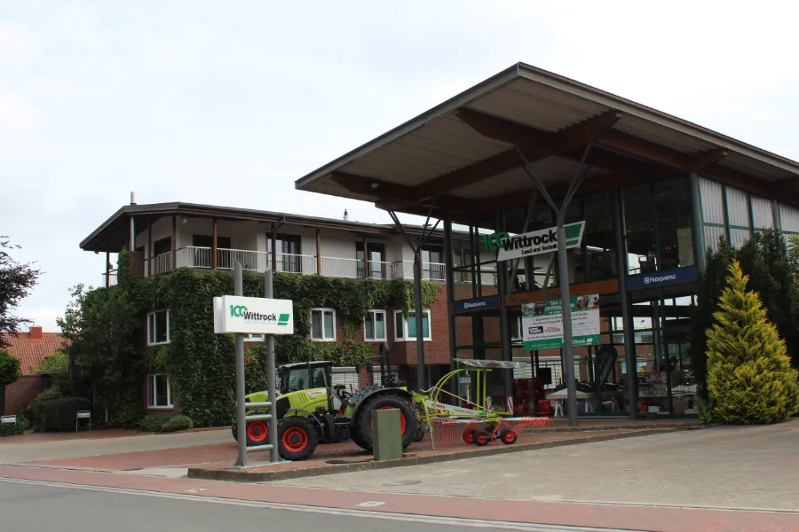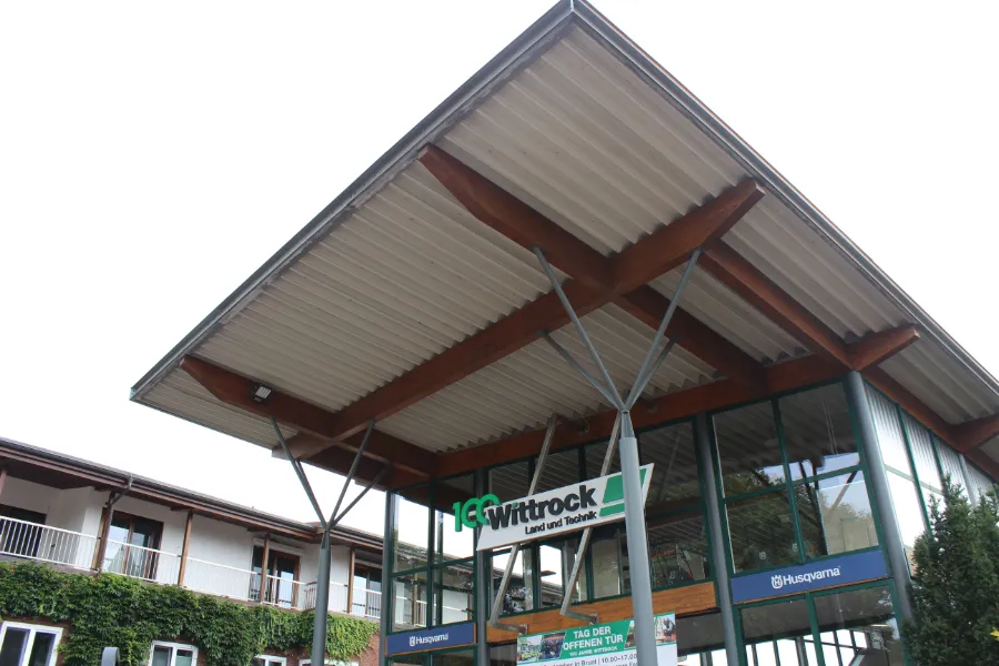 Wittrock Landtechnik ist Technikpartner für Landwirte und Kommunen. In den 90er Jahren entwickelte Architektin Claudia Pieper für Bernd und Maria Wittrock die Aufstockung des vorhandenen Wohnhauses um ein Dachgeschoss in leichter Holzrahmenbauweise mit umlaufender Terrasse. Auch der Neubau der Ausstellungshalle wurde nachhaltig aus einer Konstruktion bestehend aus Stahlträgern in Kombination mit Holz-Leimbindern geplant und umgesetzt.